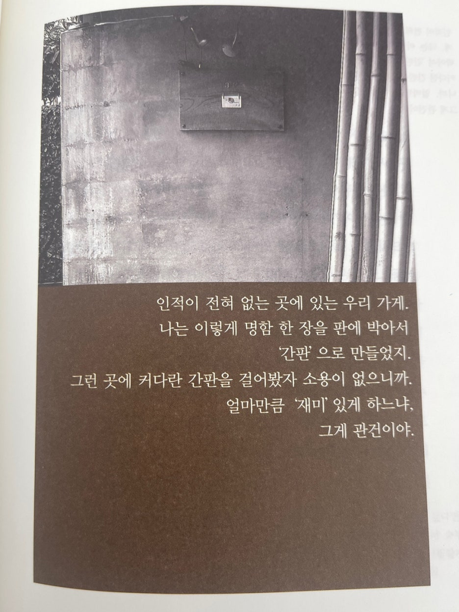 - "제일 맛있는 가게를 한다는건 무리야.' 대신 "제일 재밌는 가게를 하는건 가능하지 않겠어?"