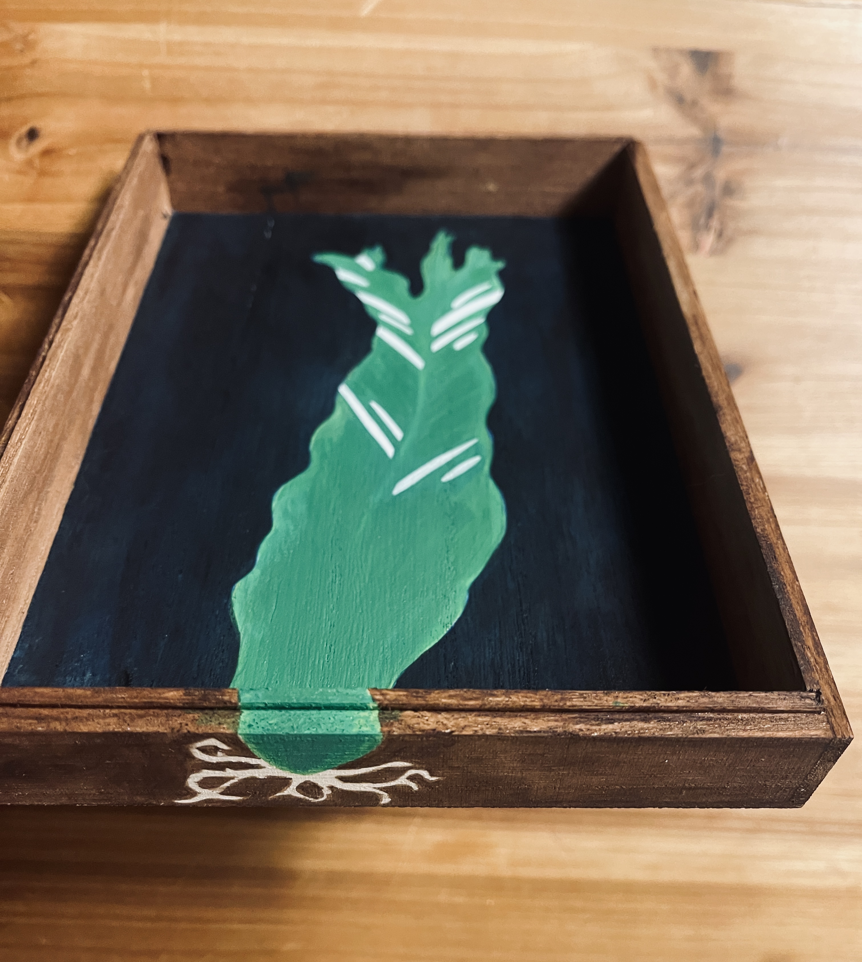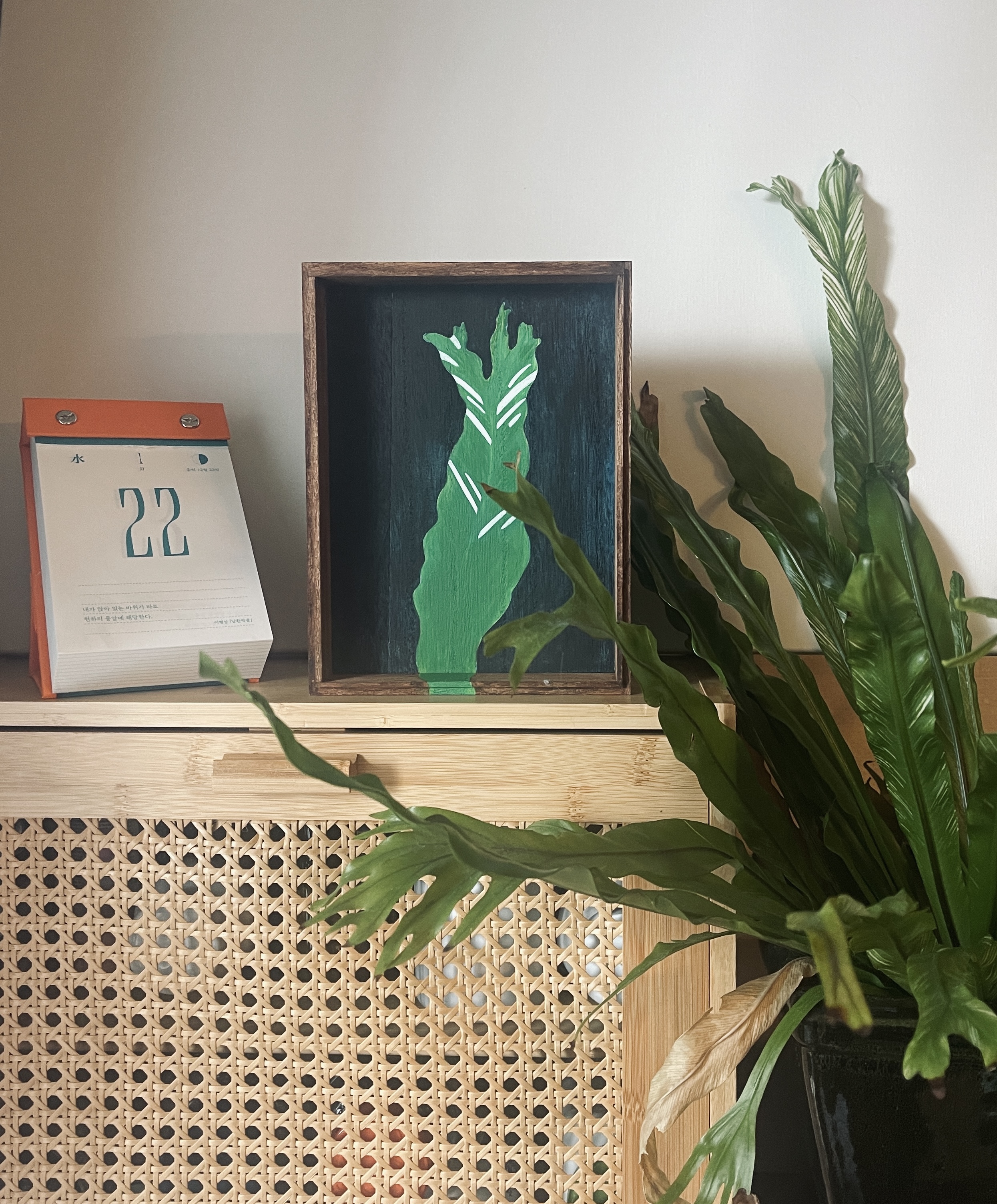 바탕의 갈색 틀이 흙처럼 느껴져서, 오래오래 살라고 뿌리를