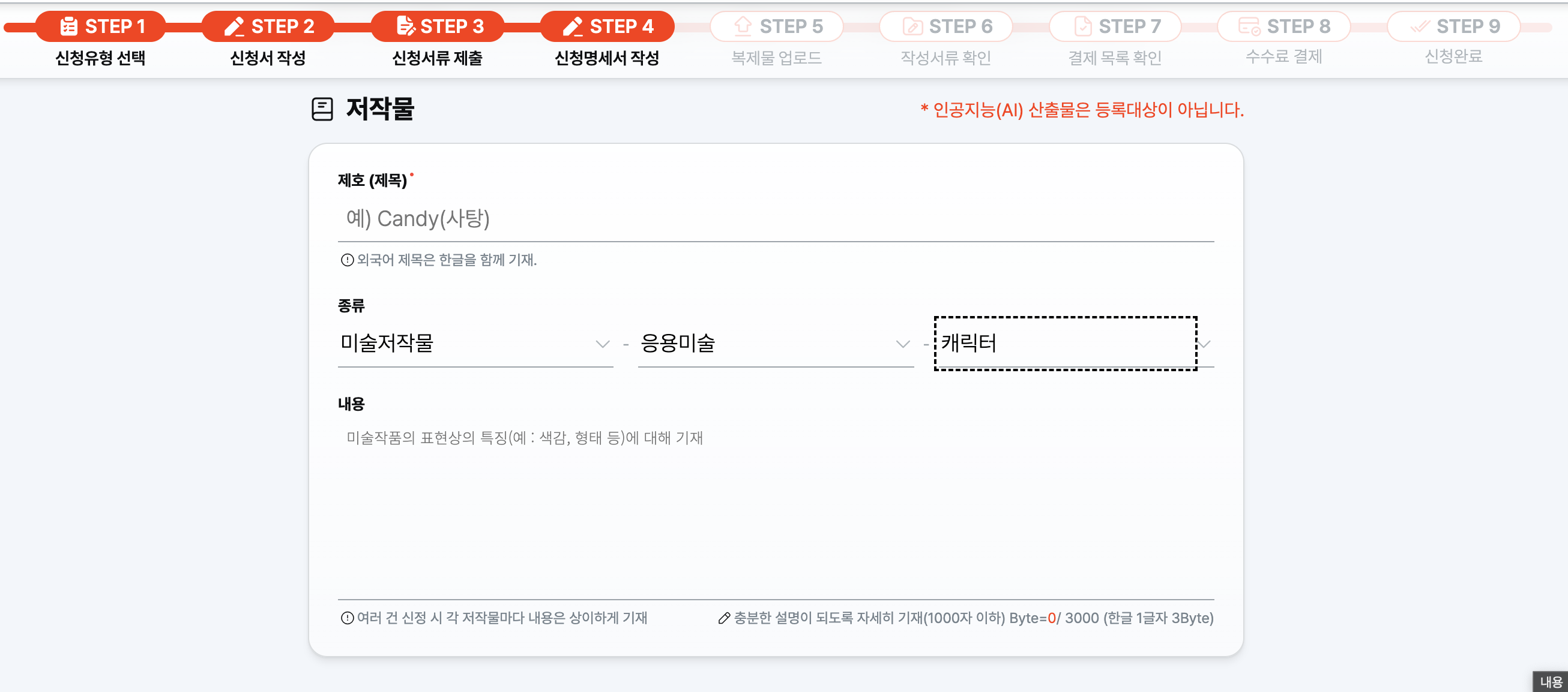 - 미술 저작물 - 응용미술 - 캐릭터로 선택합니다.