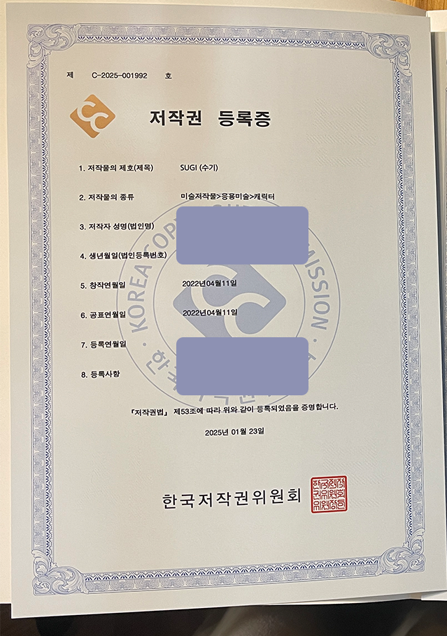 그래서 이번엔 캐릭터 저작권등록을 했습니다.