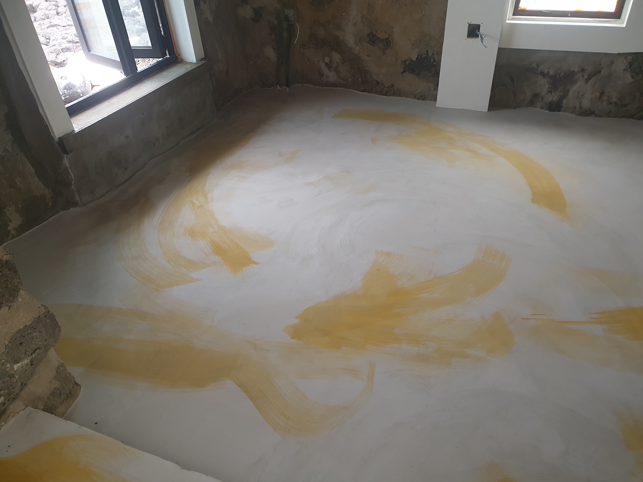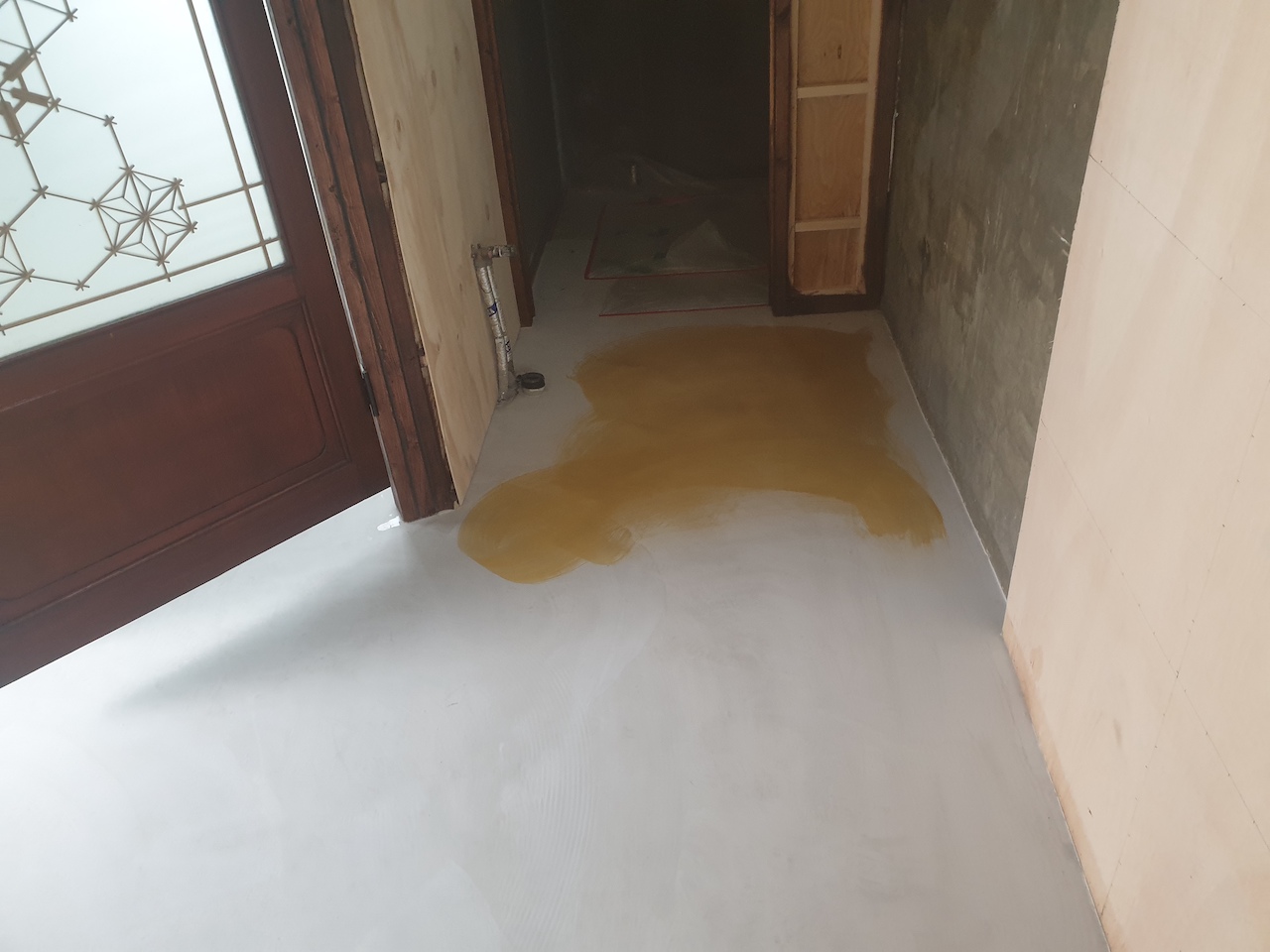 수평 몰탈 마감 후 정말 황색으로 색을 입히셨다.