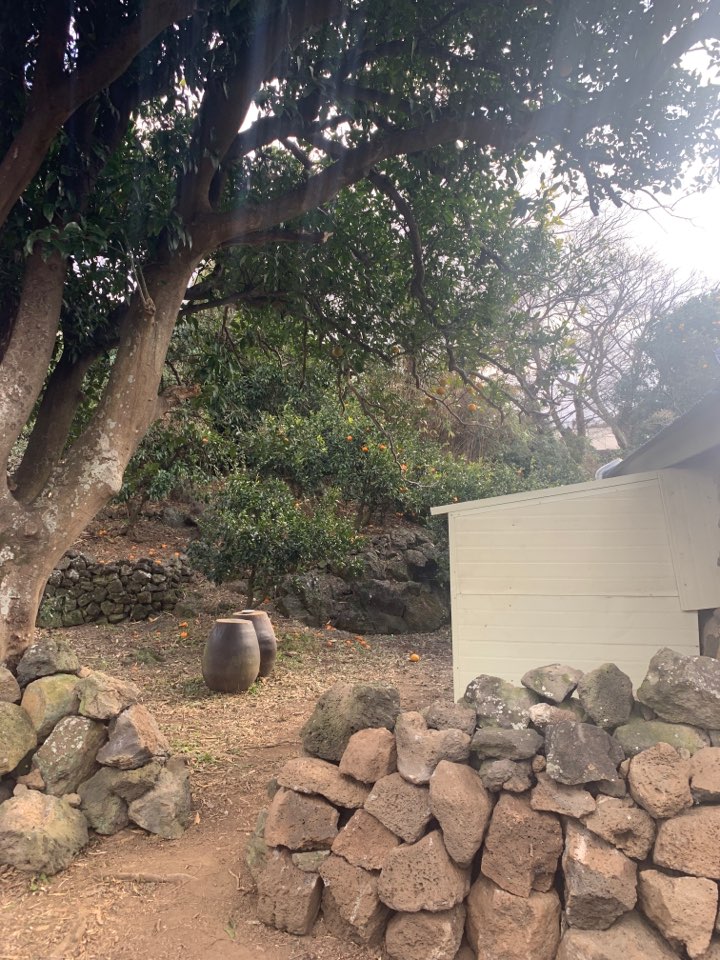 돌 창고 1채, 수많은 귤나무, 멋진 동백나무,