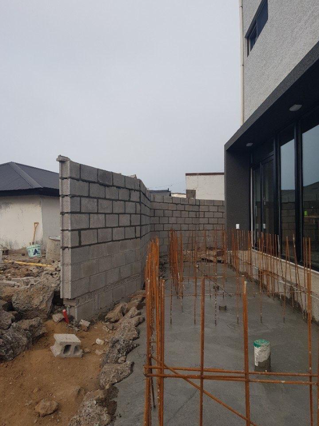 결국 계단은 잘랐고 경계대로 담을 쌓게 됐다.