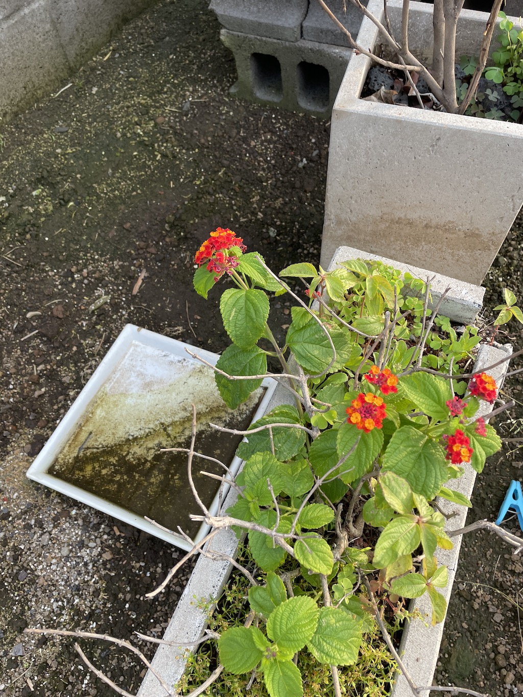 화분 원래 나무는 죽고 이름 모를 식물이 꽃이 피었다.